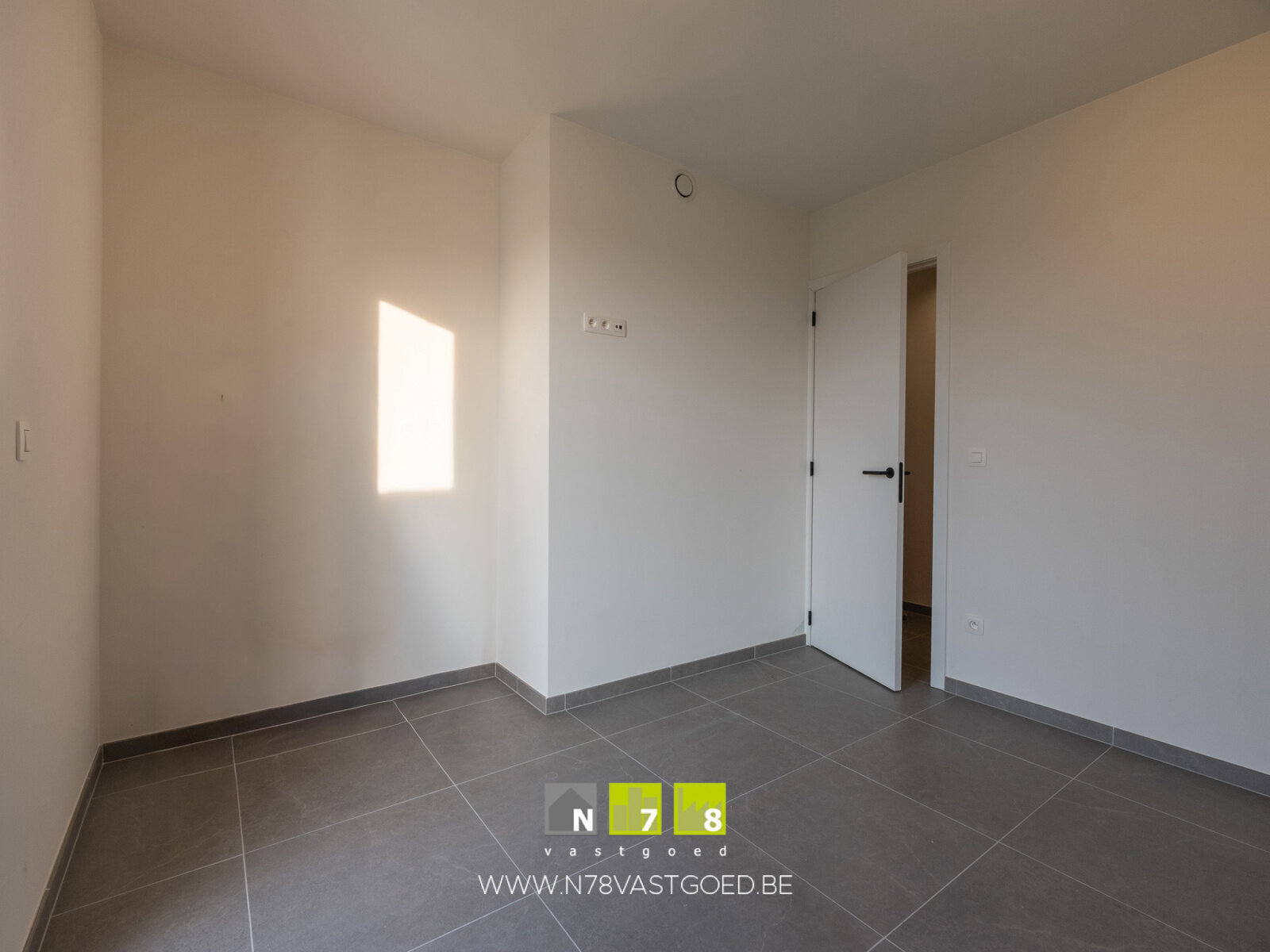 - Slaapkamer 1 (3,4 x 3,35 = 11,39m²): tegelvloer.