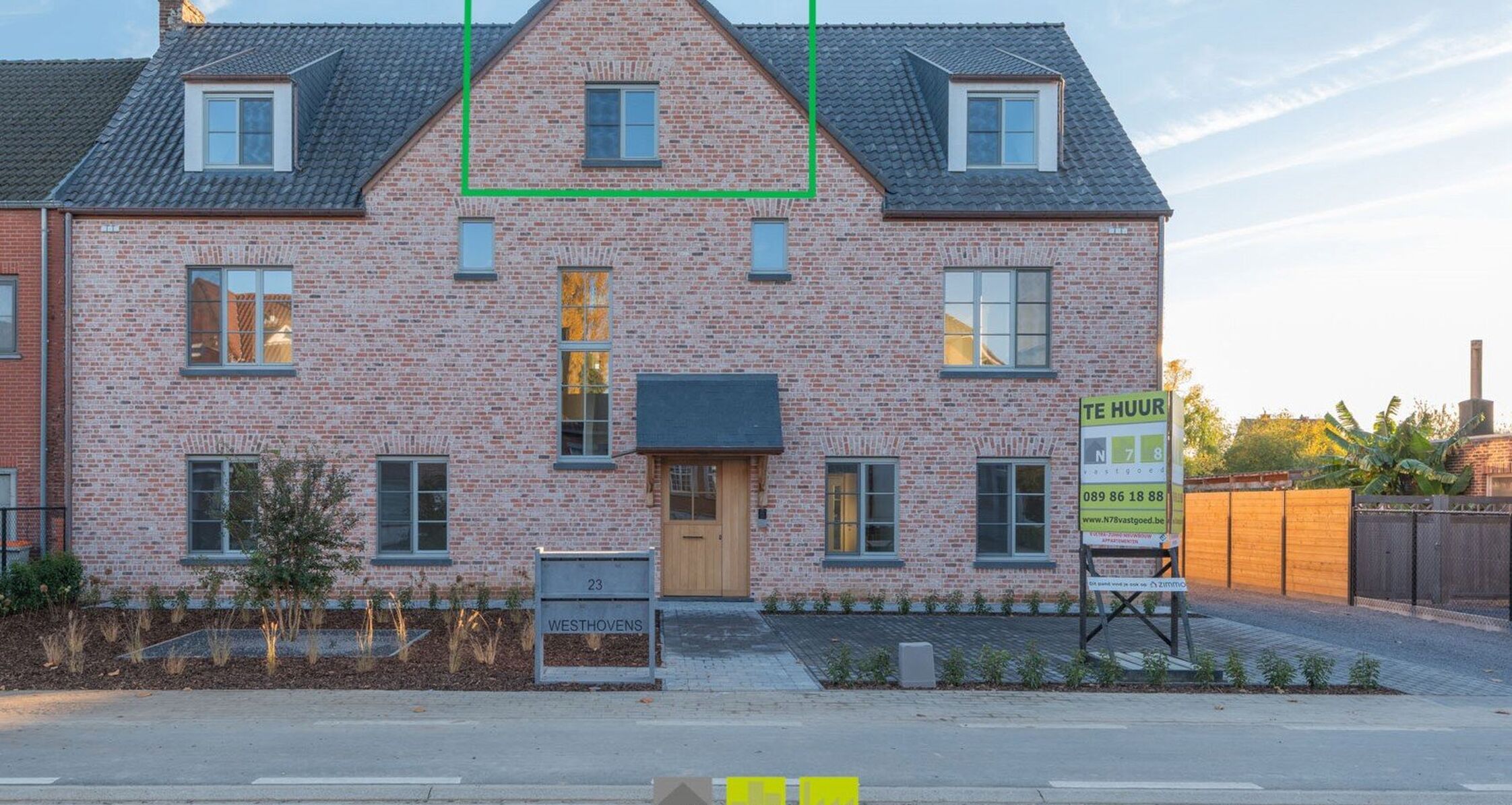De residentie “Westhovens” omvat 6 wooneenheden, 3 op het gelijkvloers en 3 duplex.