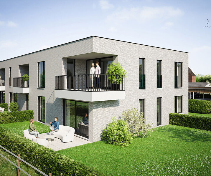 - De gelijkvloerse appartementen beschikken over een terras van 16m², alsook een aangrenzende tuinzone van 31m² – 141m².
