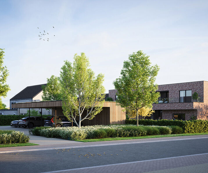 Elk appartement beschikt over een privatieve carport met een bijhorende tuinberging, wat extra opbergruimte biedt voor fietsen of tuinmateriaal. De carports zijn voorzien van een dubbele UTP bekabeling zodat er een slimme laadpaal geïnstalleerd kan worden. De carports zijn apart bij te kopen. Daarnaast zijn er nog vier extra buitenparkeerplaatsen beschikbaar voor aankoop. Deze opzet zorgt voor een vlotte parkeermogelijkheid en een opgeruimde, autoluwe woonomgeving.