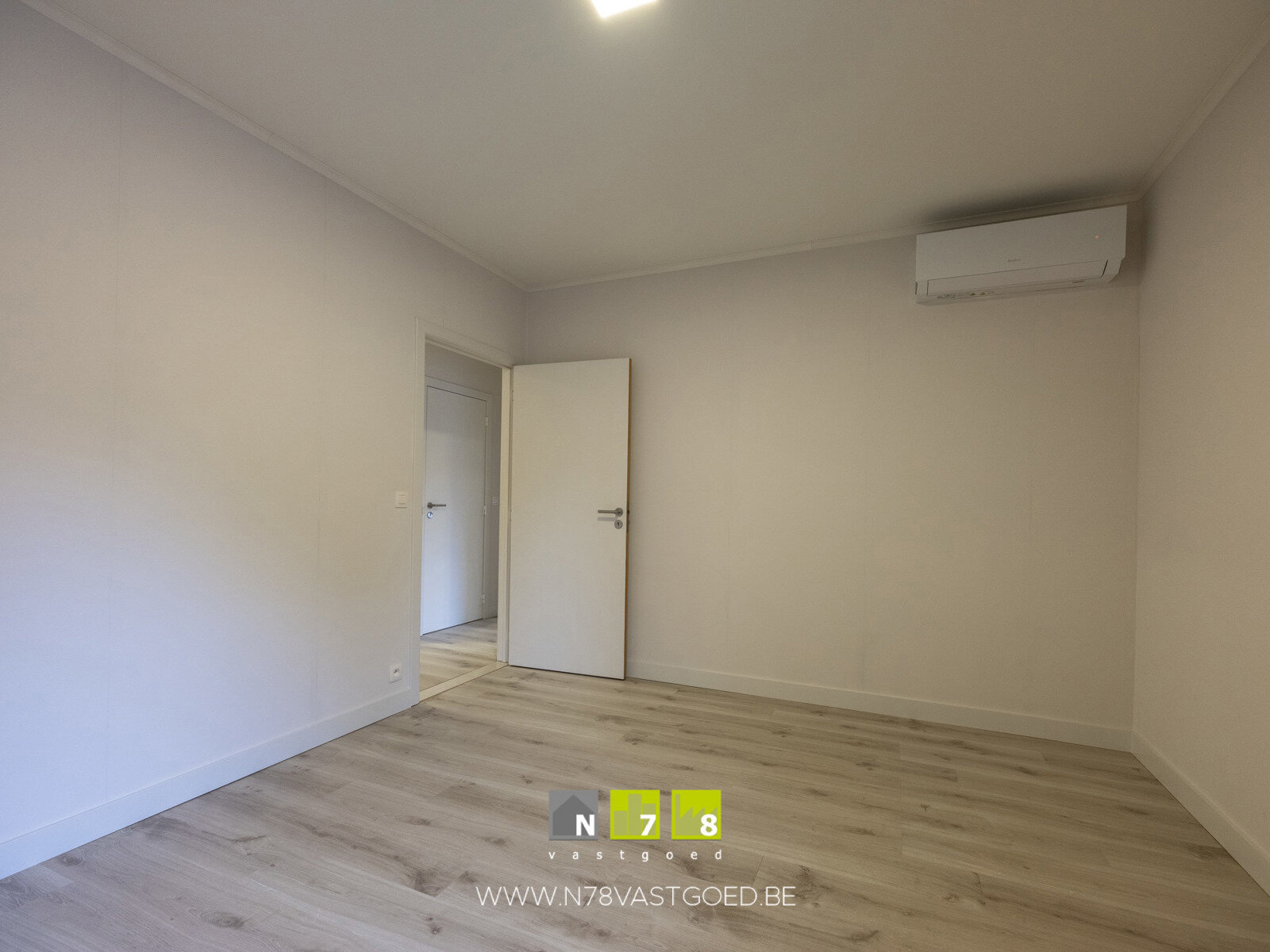 - Slaapkamer 2 (3,83m x 3,40m = 13,02m²): airco, laminaat.