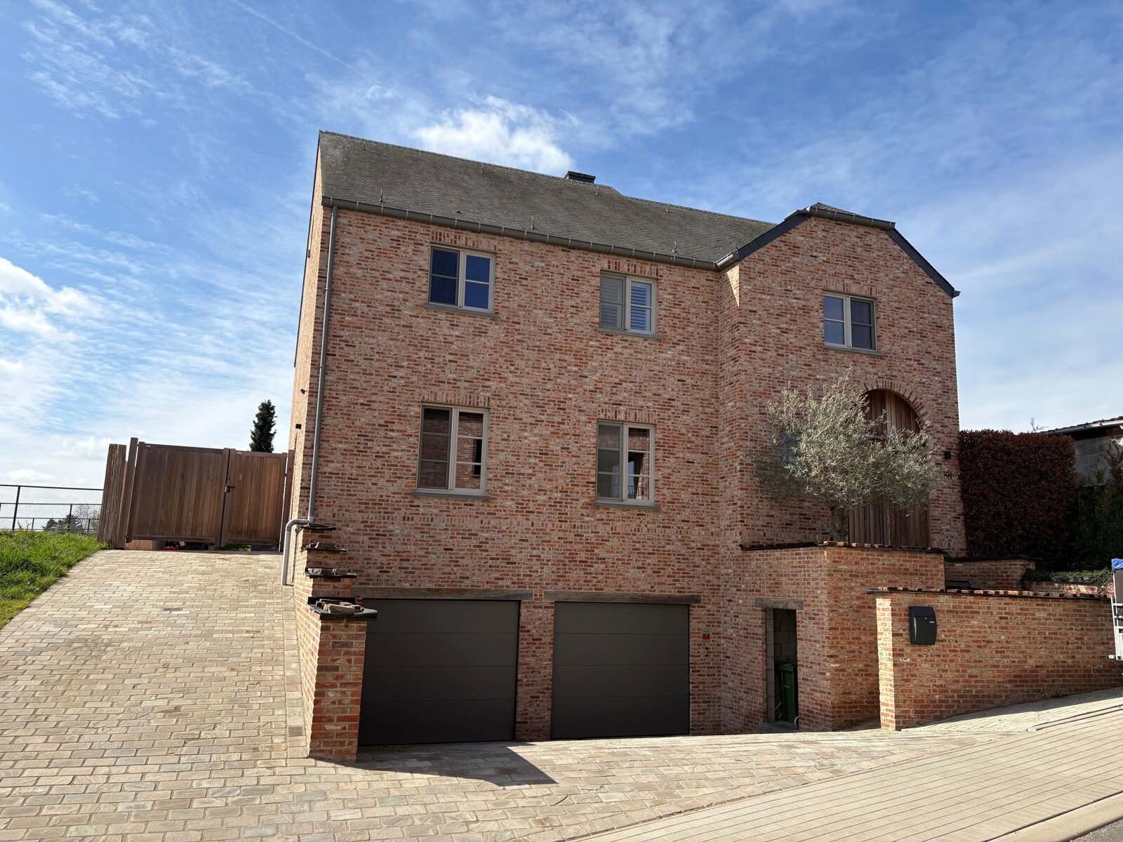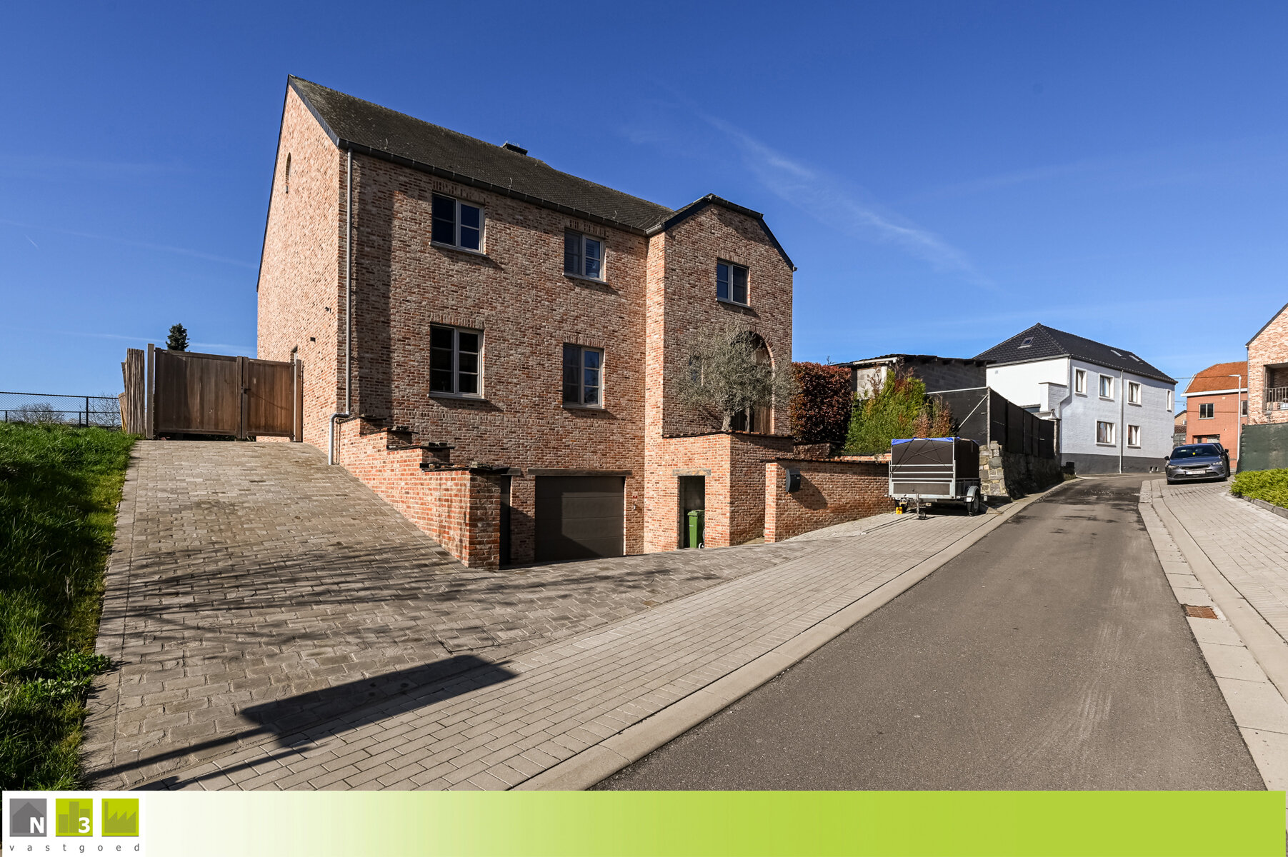 - Parking/doorgang vanuit de straat aan de linkerzijde van de woning: Beklinkerd en afgesloten met een poort.
