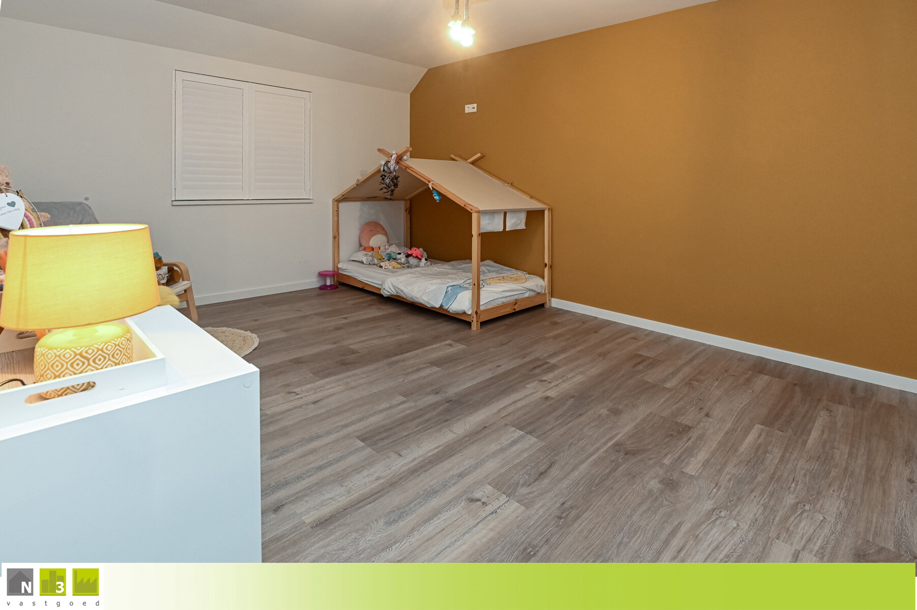 - Bureau/speelkamer (10m²): 3.70x2.76m.