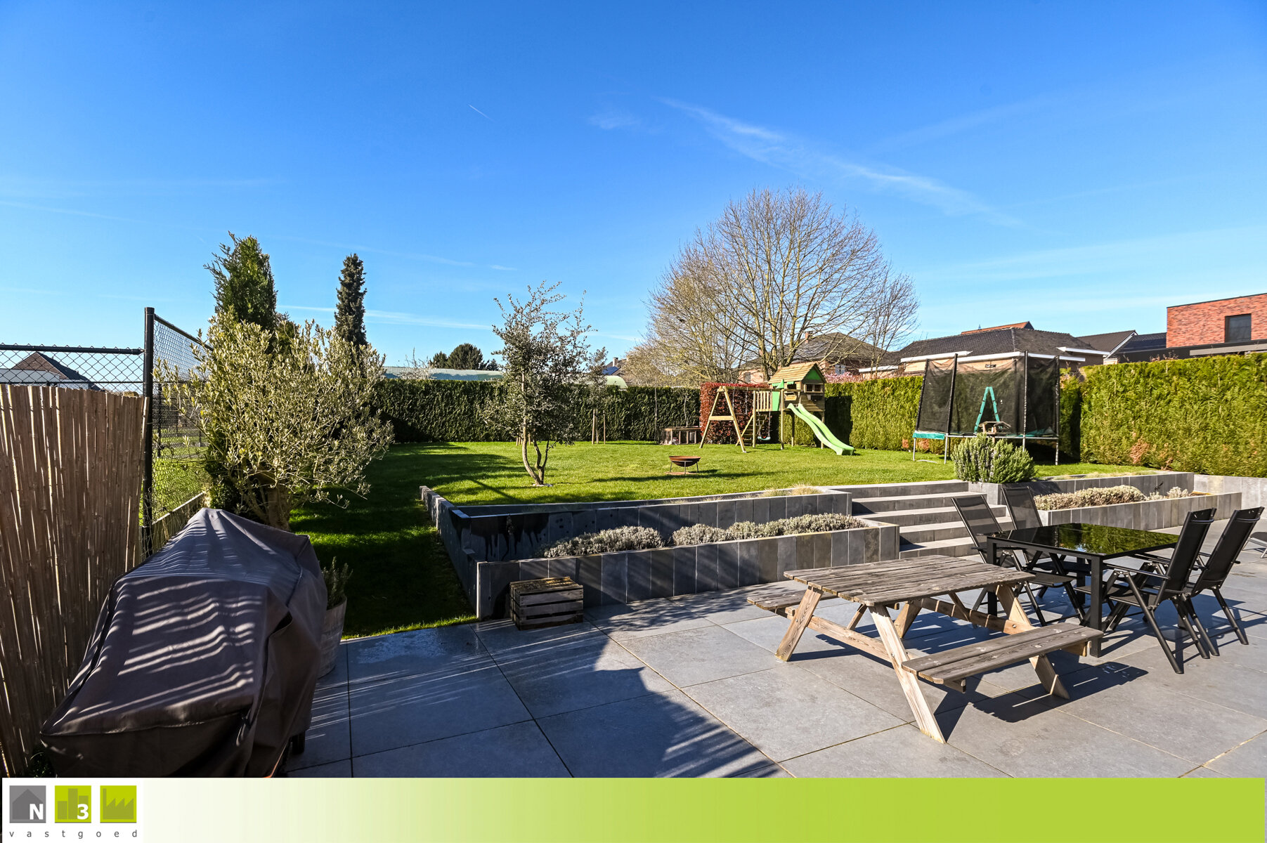 - mooi aangelegde, zuidwestelijk georiënteerde en volledig omheinde tuin met terras