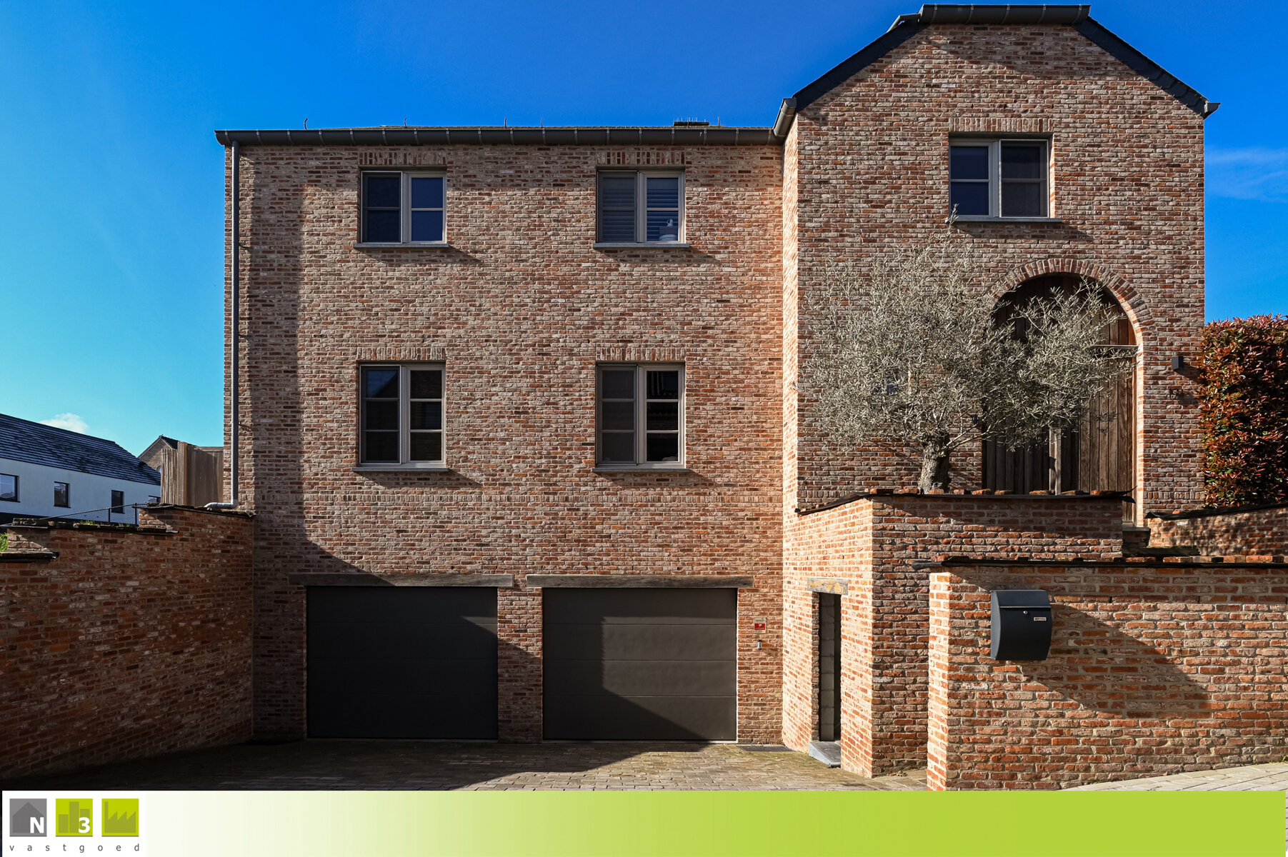- Garage (65m²): 10.00x6.50m, plaats voor 4 auto's en bereikbaar via 2 aparte automatische sectionaalpoorten.