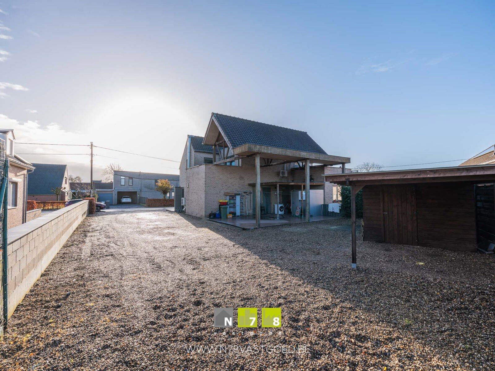 - Parking aan de voorzijde (kiezelstenen).