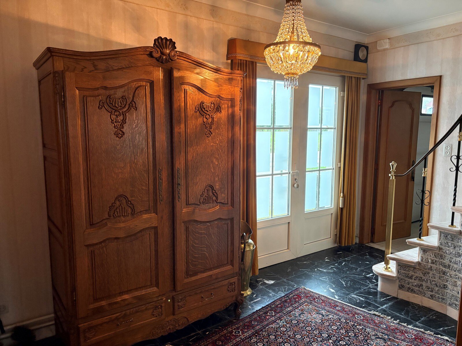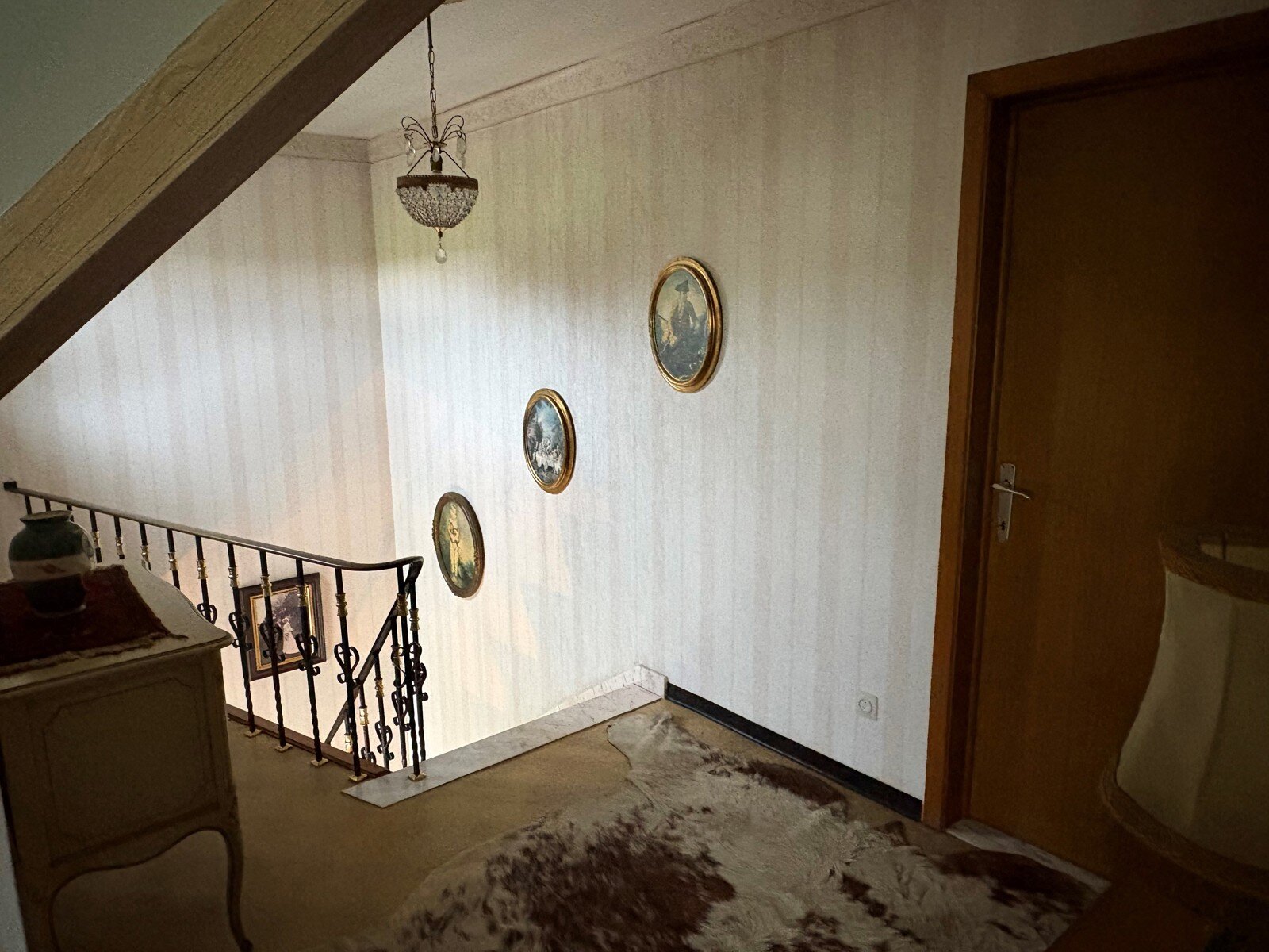 - Inkomhal (12m²): 4.00x3.00m, met de trap naar de bovenverdieping en voorzien van een vestiaireruimte. Tegelvloer.