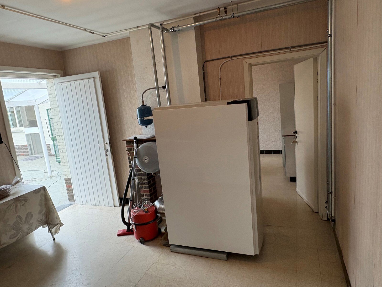 - Wasplaats (5m²): 3.00x1.80m met de aansluiting voor de wasmachine en voorzien van een uitgietbak en tegelvloer.