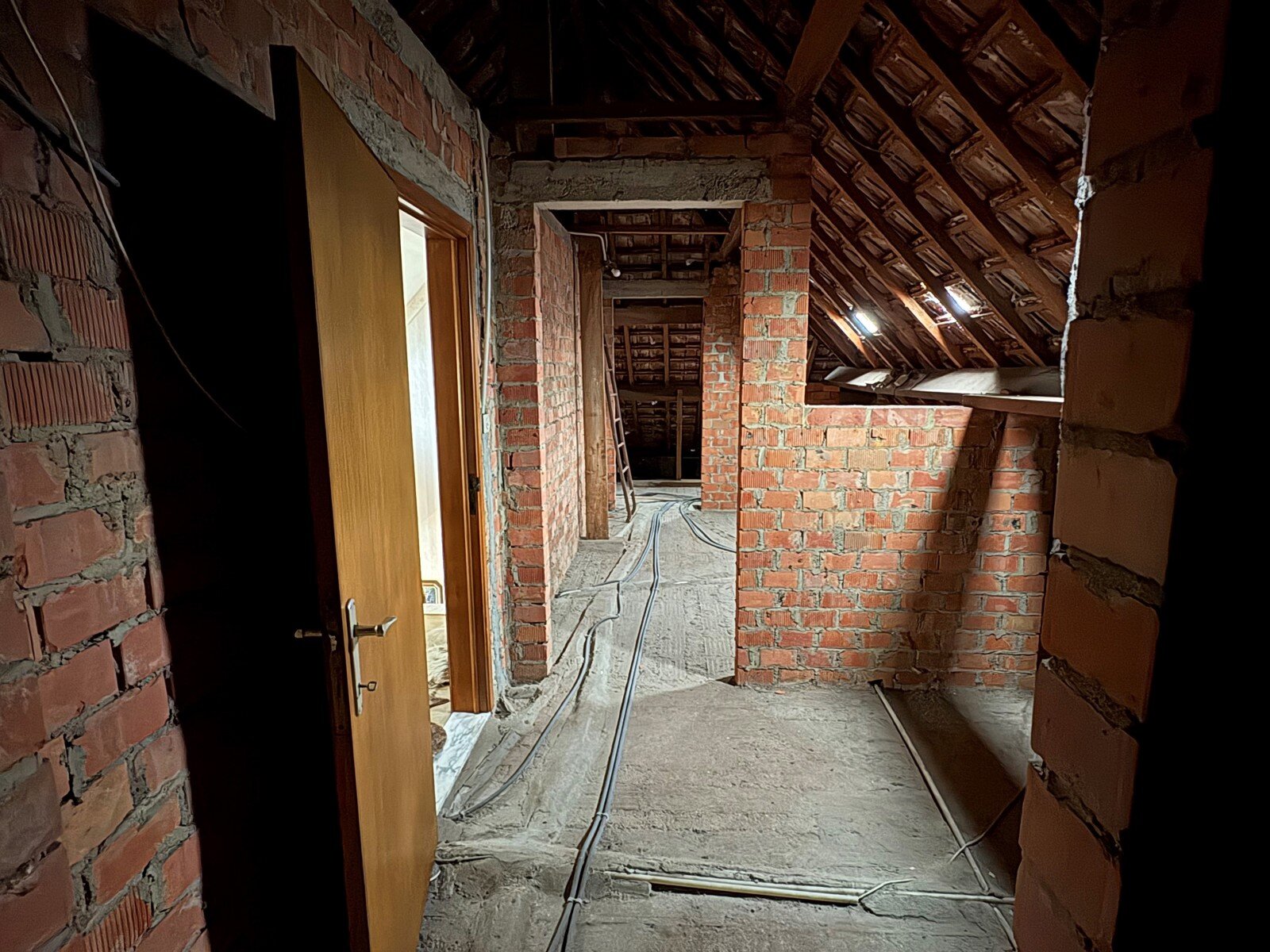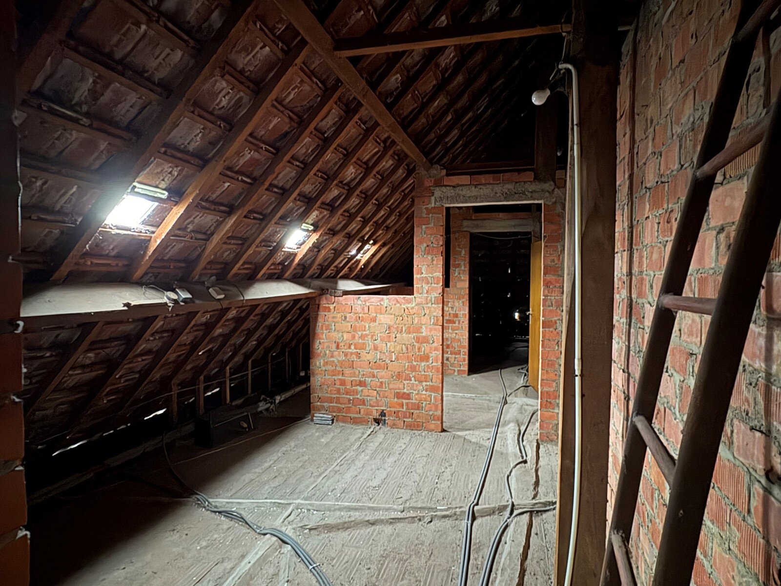 - Zolder (45m²): 13.00x3.50m, direct toegankelijk vanuit de nachthal. Niet afgewerkt.