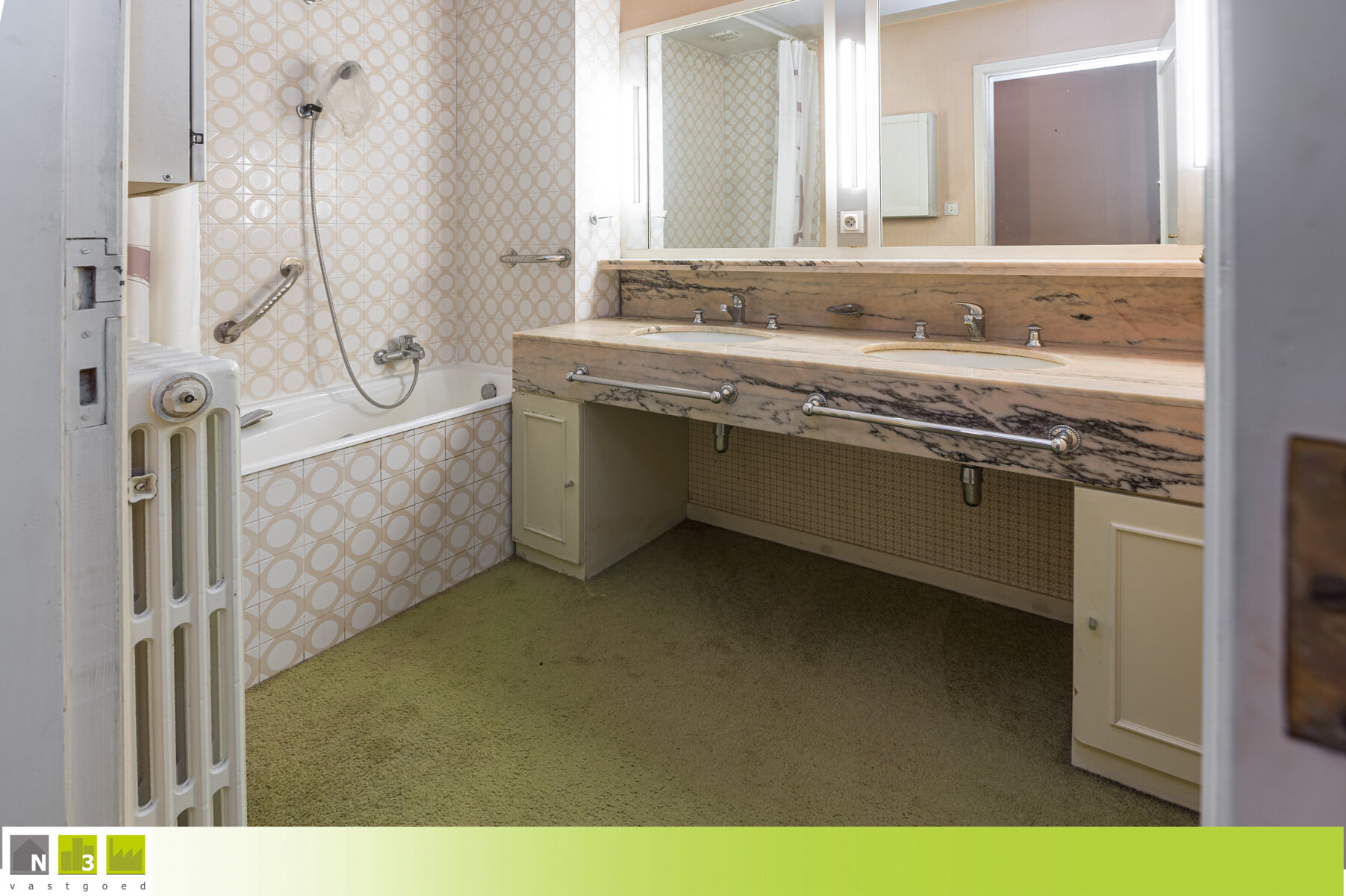- Badkamer 1 (5m²): 2.75x1.90m, uitgerust met een ligbad en een badkamermeubel met dubbele lavabo en onderkasten.