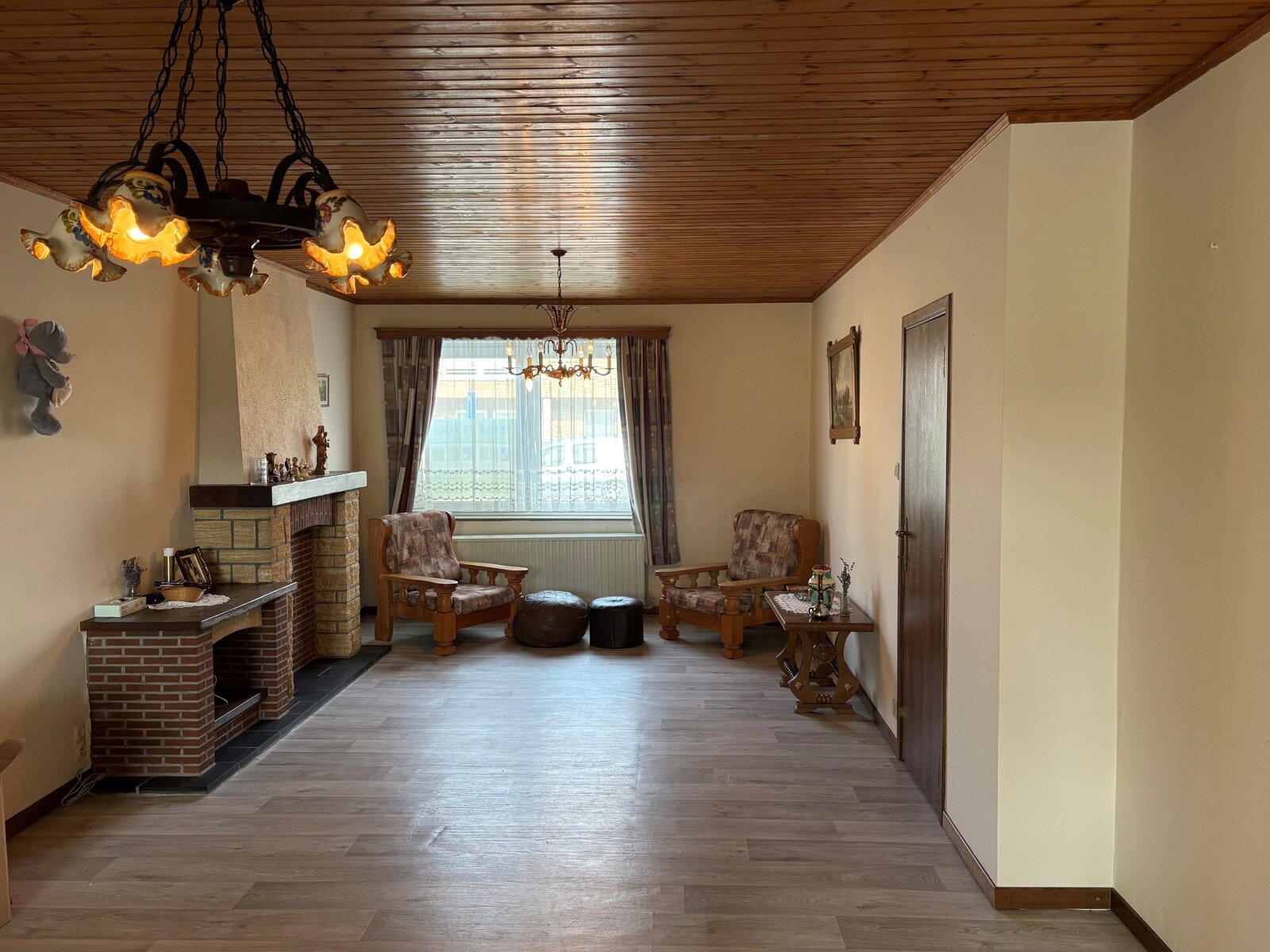 - Leefruimte 1 (36m²): 9.00x4.00m, voorzien van een schouw en laminaatvloer. Raam met dubbel glas aan de straatzijde.