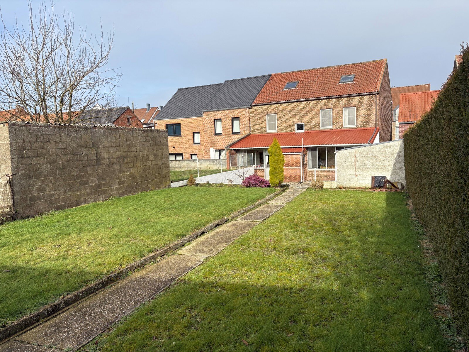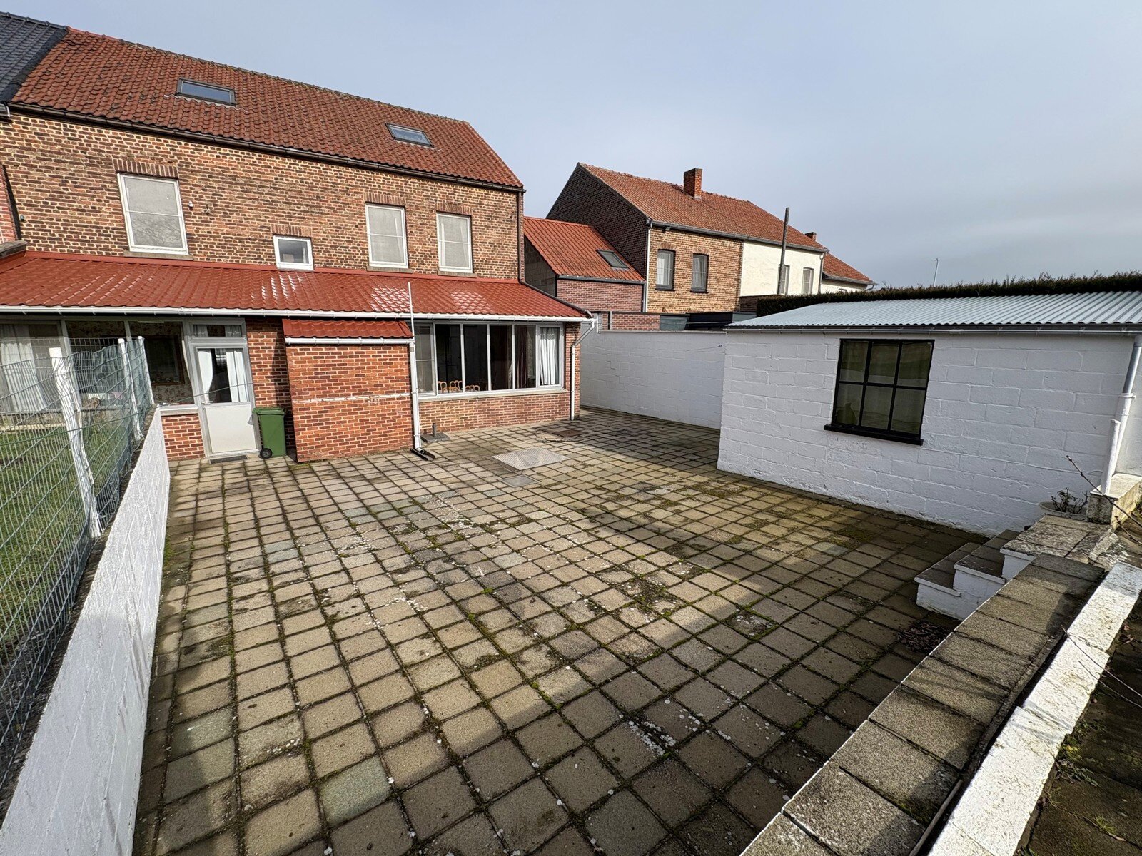 - Doorgang vanuit de Steenweg: rechtstreekse toegang vanuit de Steenweg naar het terras/de tuin, 1 meter breed aan de straatzijde. Beklinkerd.