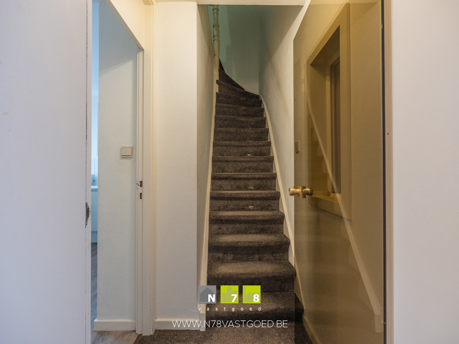 - Trappenhal (1,90m x 3,45m = 6,56m²): trap naar de zolder, tapijt.