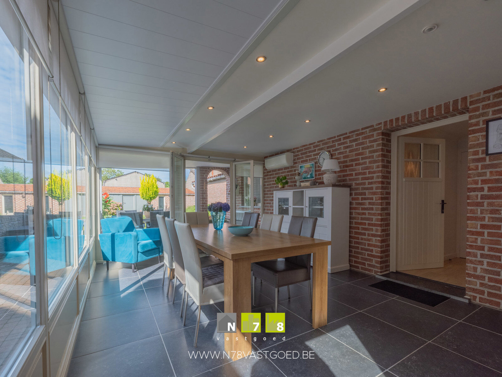 - Veranda (3,70m x 5,61m = 20,76m²): airco, vliegenschuiframen, tegelvloer.