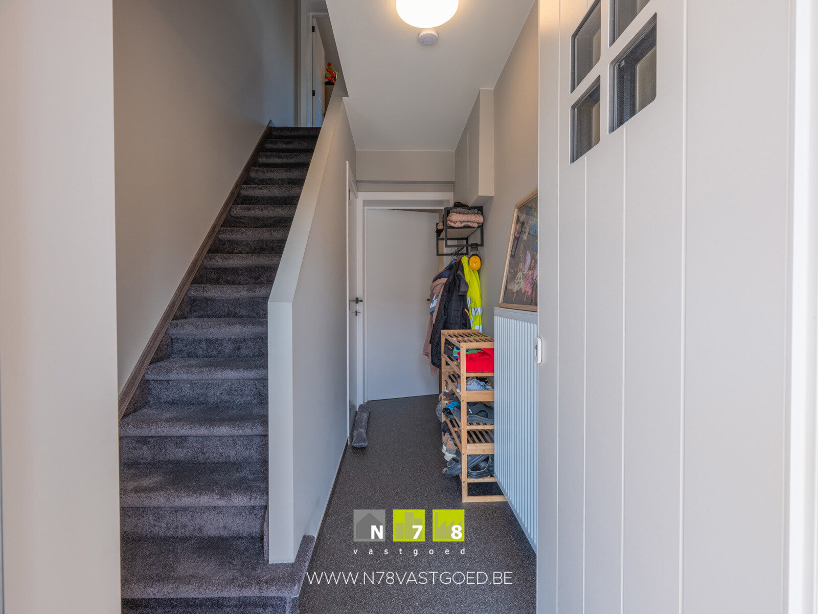 - Inkomhal (1,80m x 3,00m = 5,40m²): trap naar verdieping, steentapijt.