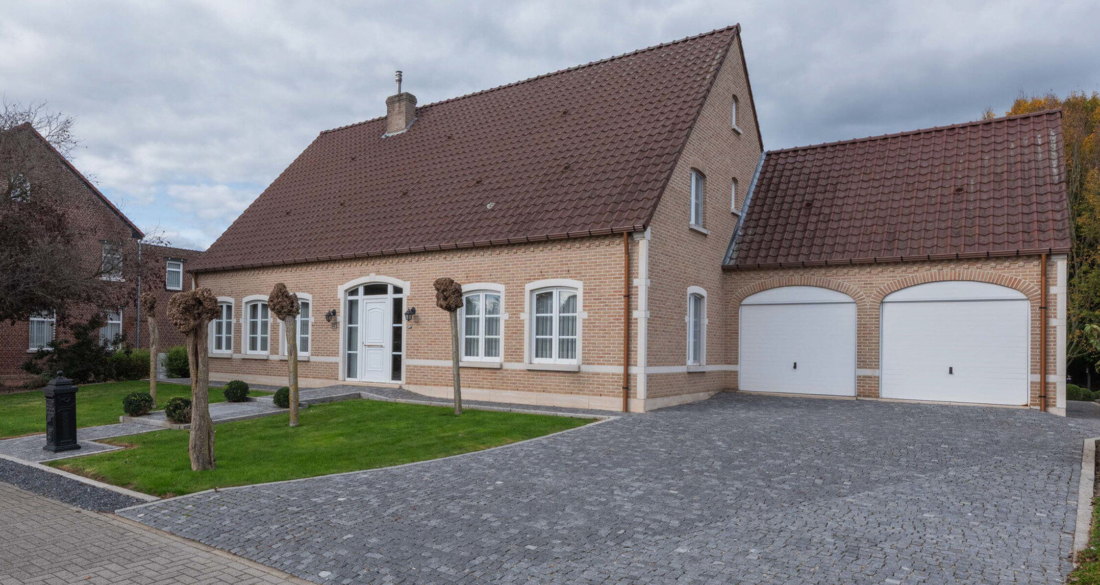 - Oprit in kleine kasseien (natuursteen).