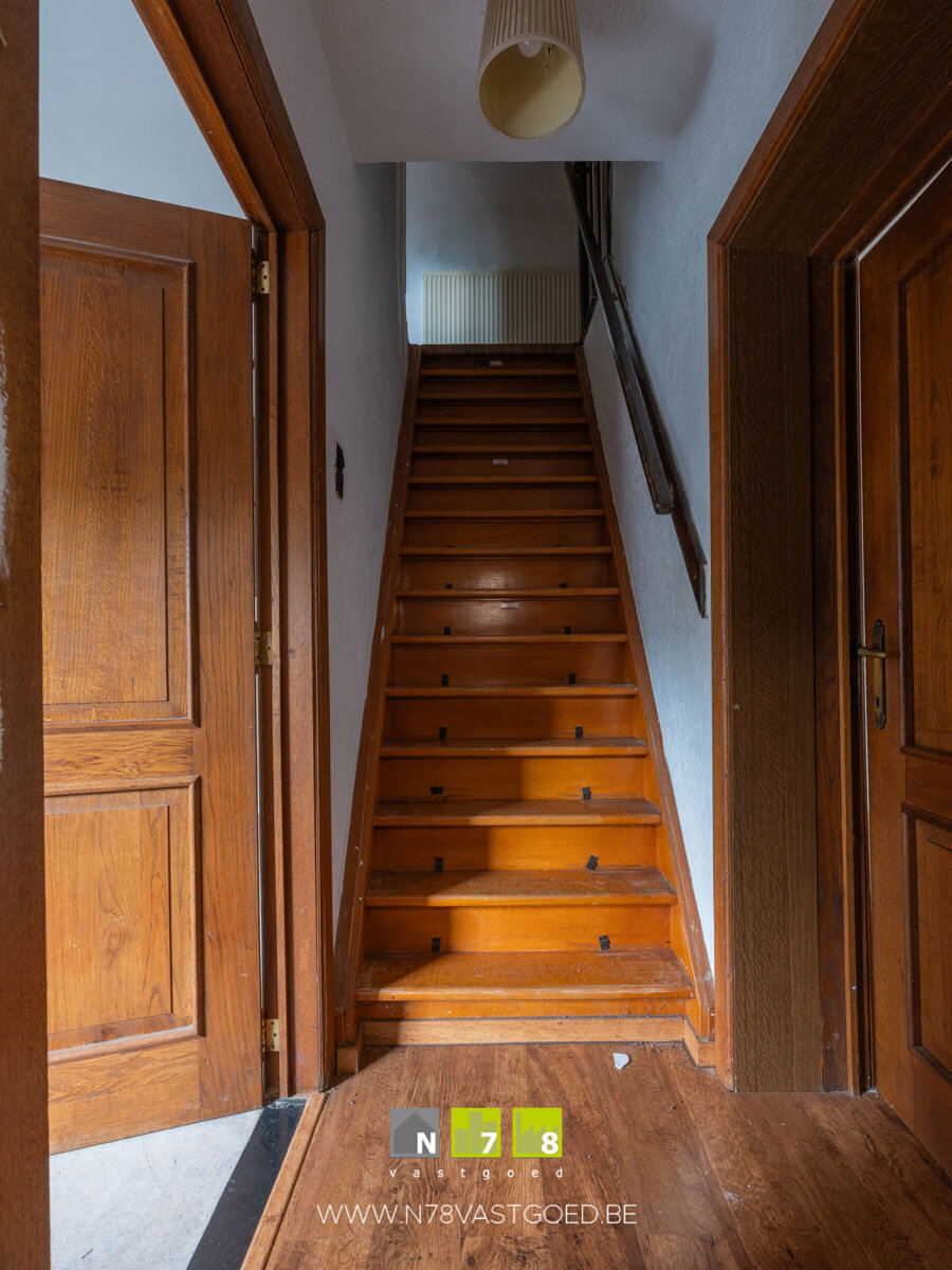 - Inkomhal (0,98m x 1,80m = 1,76m²): trap naar bovenverdieping, laminaatvloer.