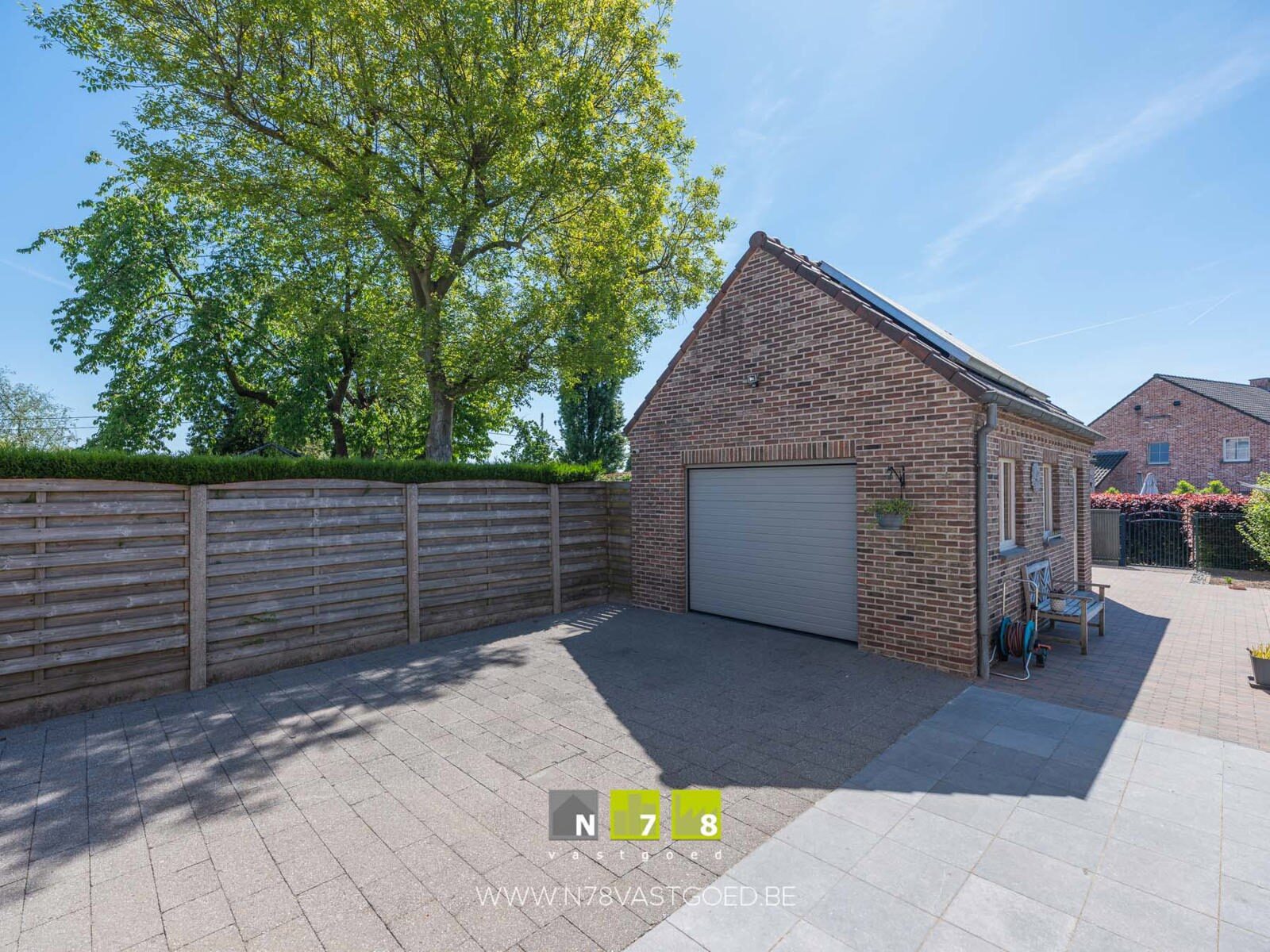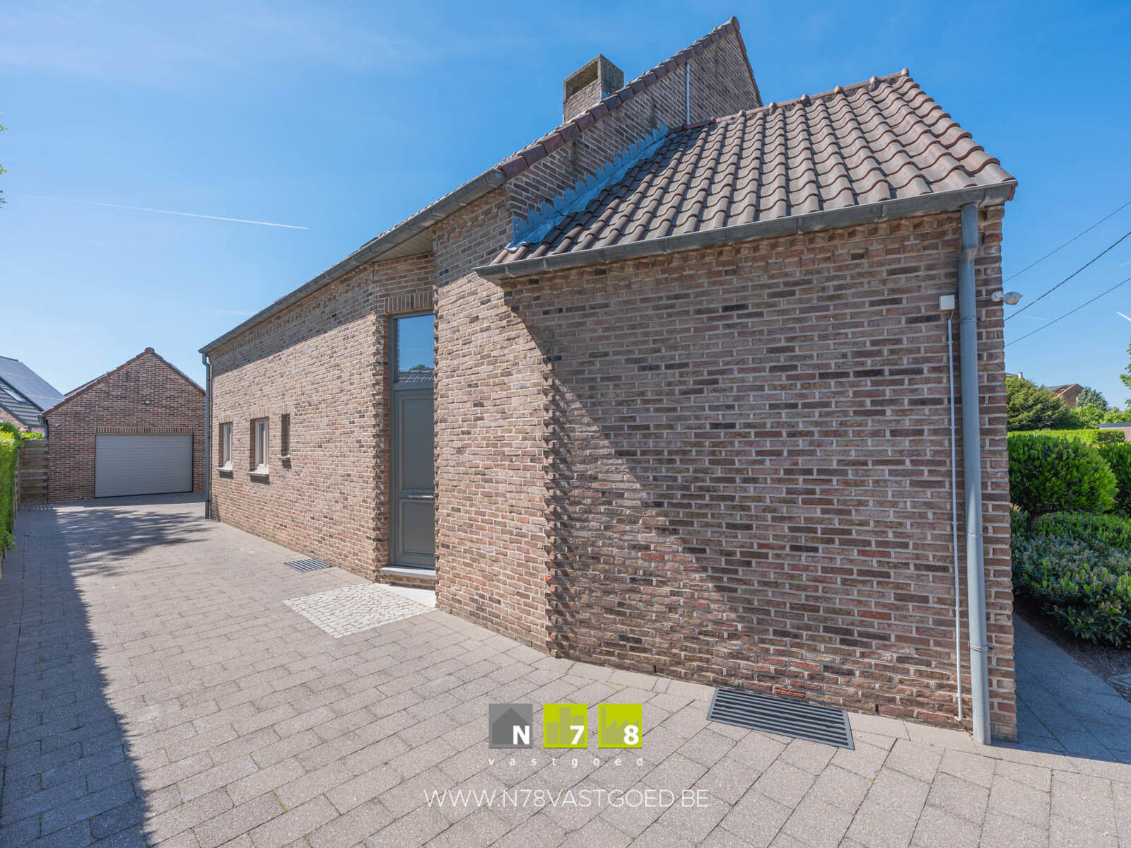 - Beklinkerde oprit richting vrijstaande garage.