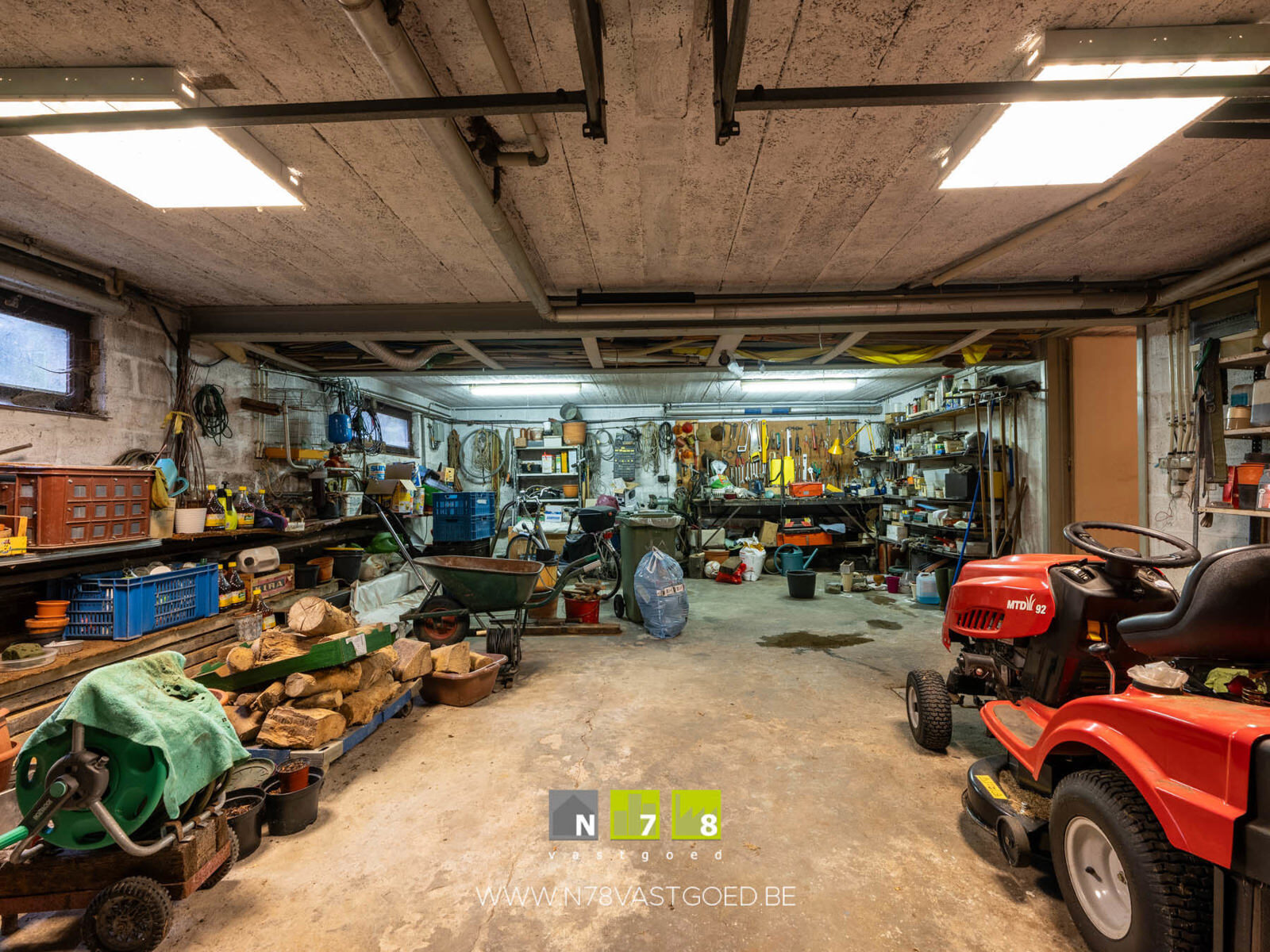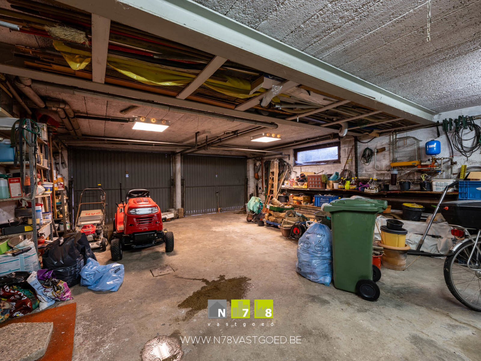 - Kelderverdieping bevat diverse ruimten + ruime garage met 2 poorten.