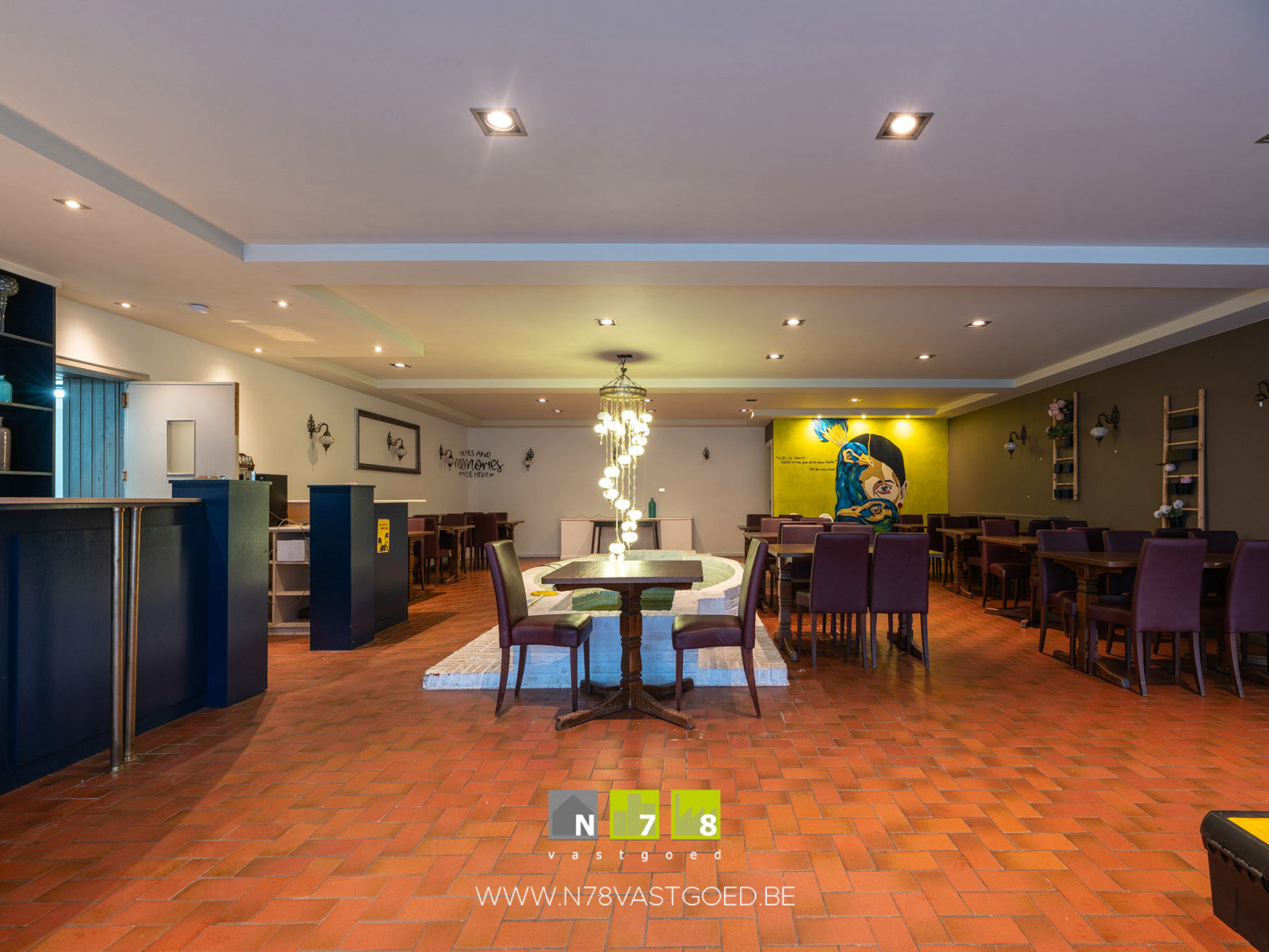 - Uniek pand bestaande uit een woning (147m²), met handelszaak (534m²) momenteel ingericht als restaurant en feestzaal.