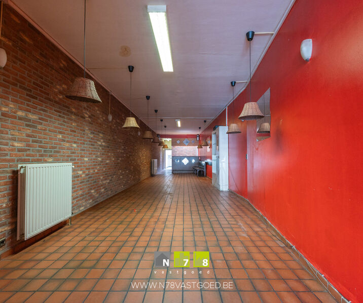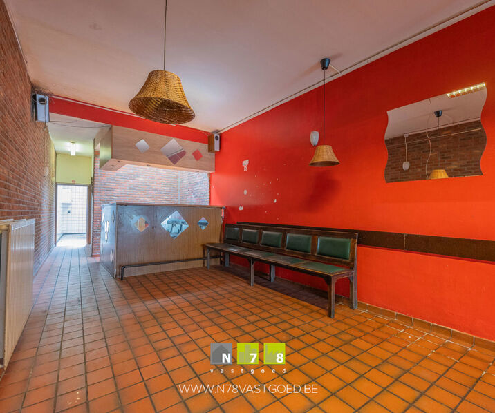 - Handelsruimte ((3,60m x 22,00m) + (1,00m x 2,90m) = 82,10m²): voorheen horecapand, tegelvloer.
