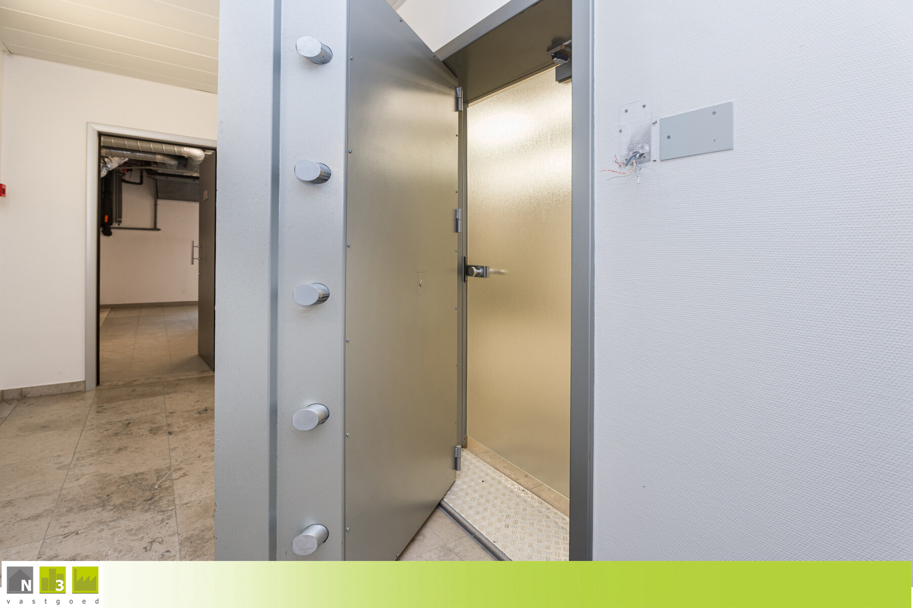 - Inkom 2 (20m²): 5.00x4.00m met een dubbele deur naar de bureel-ontvangstruimte. Tegelvloer.