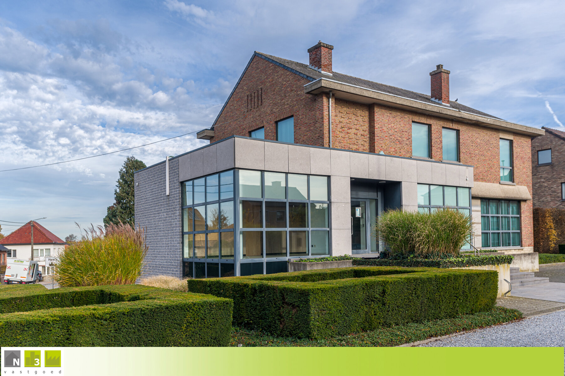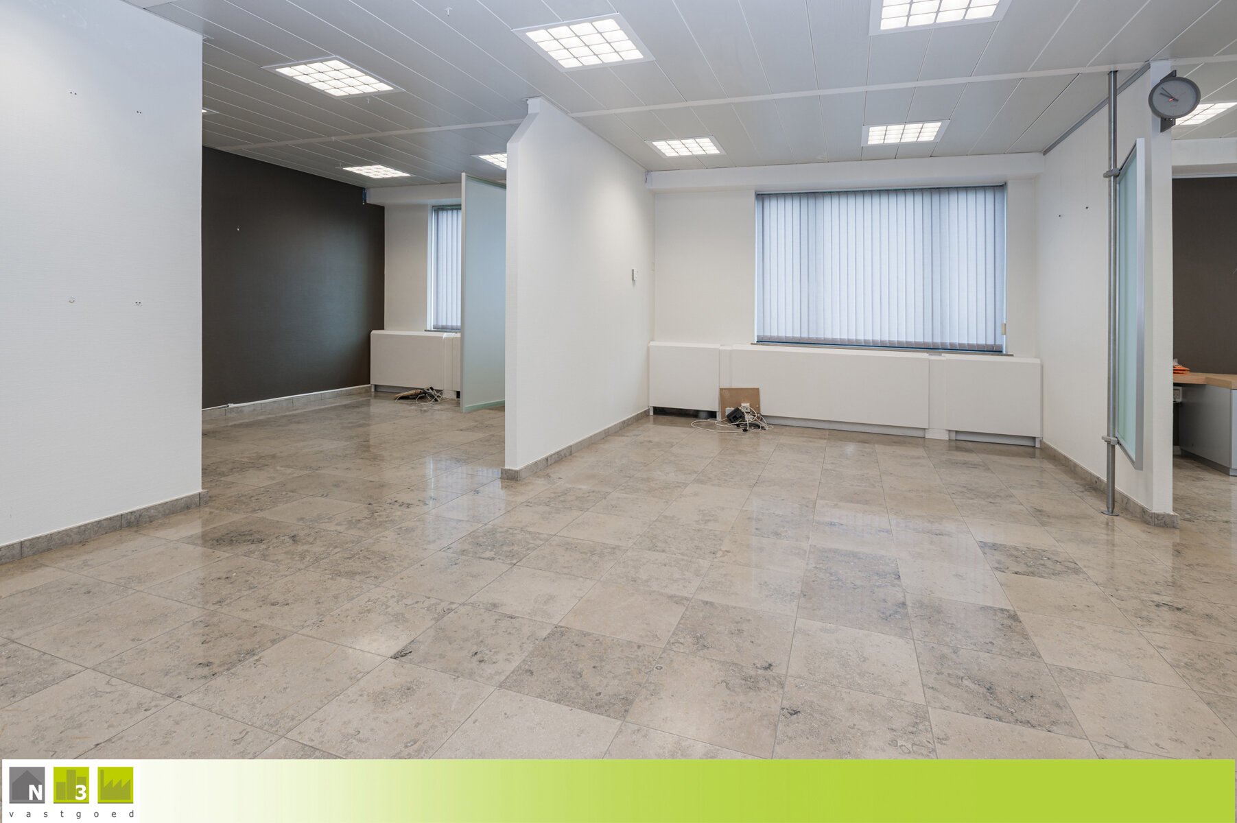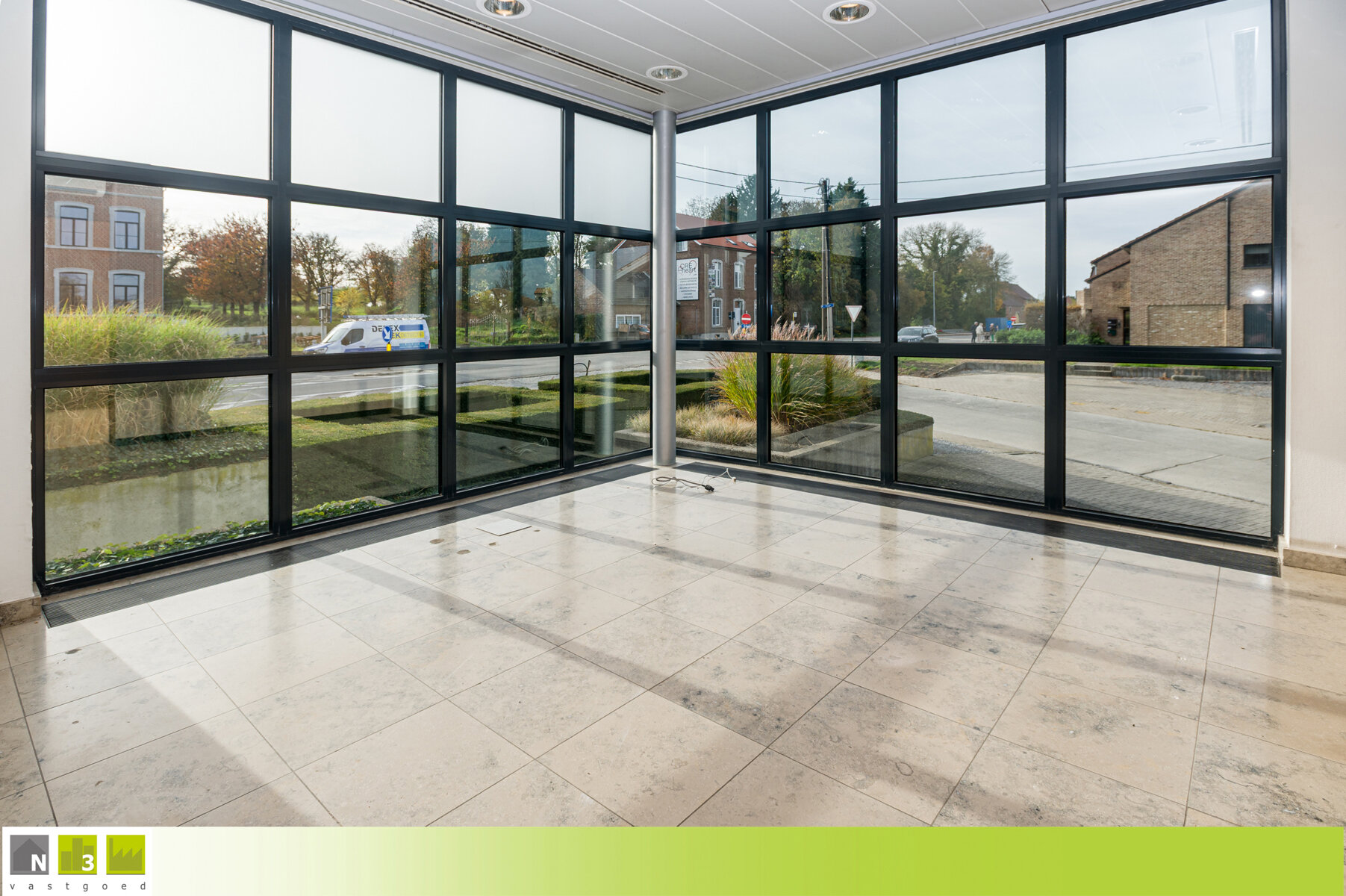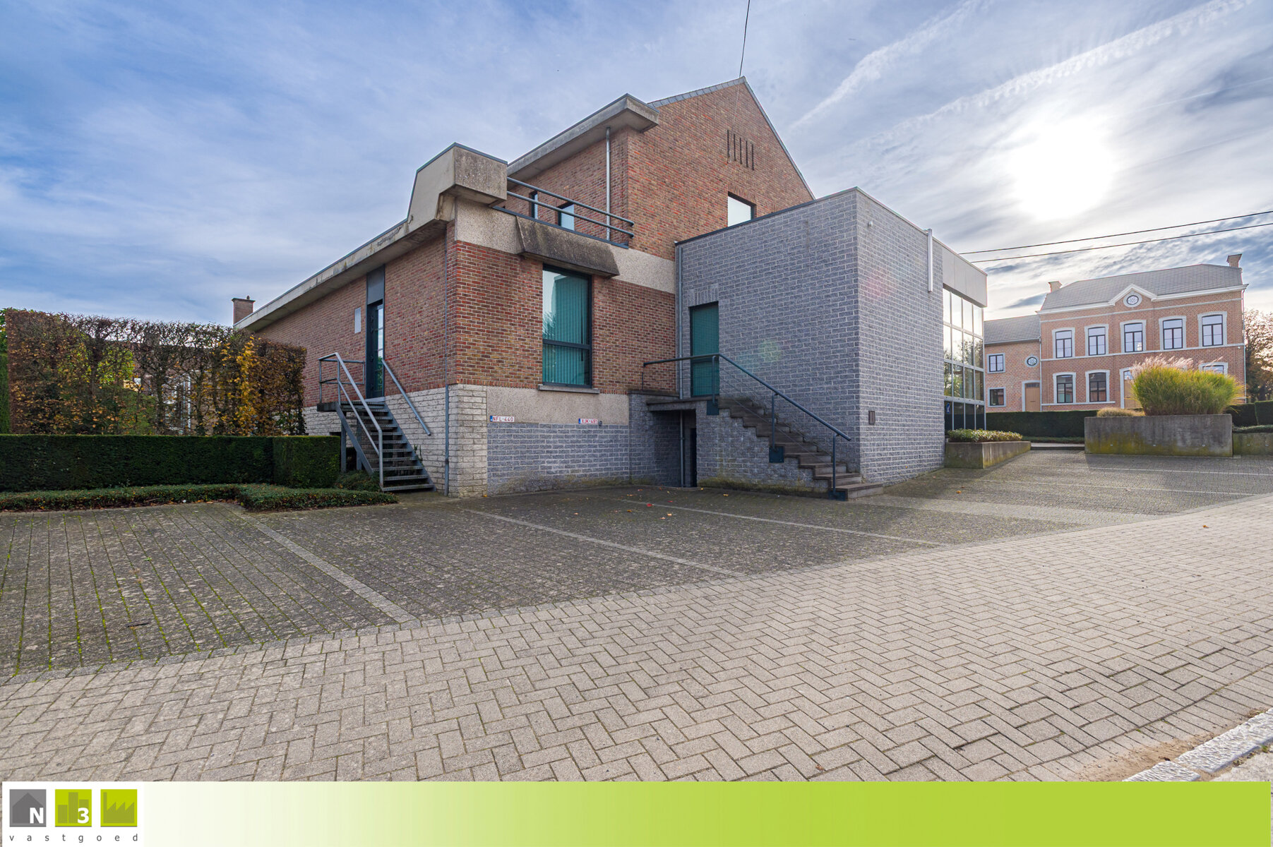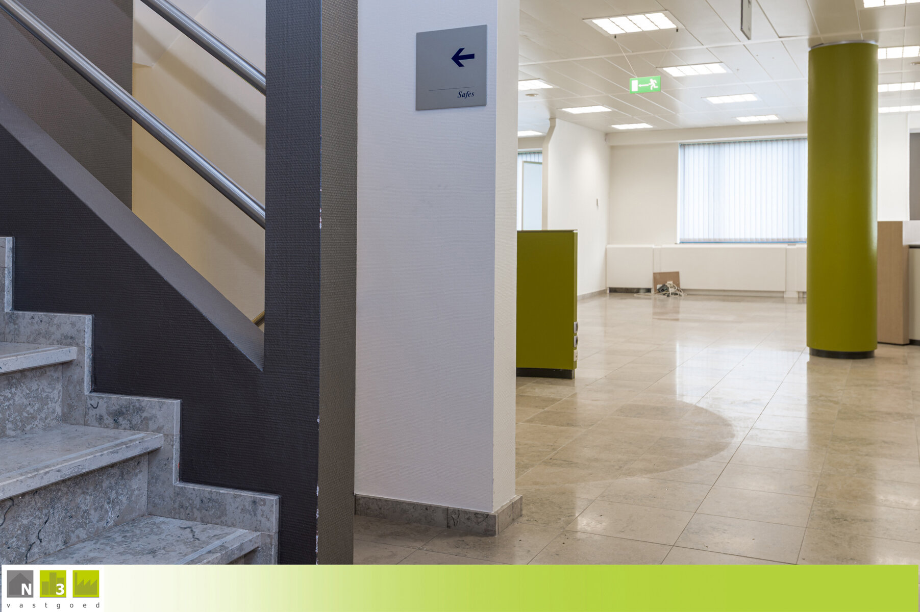 TROEVEN: - commercieel gelegen langs de drukke N3 Steenweg, dus zeer goede visibiliteit, en nabij het centrum van Heers - zeer ruime bruikbare oppervlakte van maar liefst 600m² (zolder niet inbegrepen) - verschillende mogelijkheden door zijn commerciële ligging, volume en uitstraling zoals kantoorpand, winkelpand, restaurant, groepspraktijk, ... vroeger was er ook een appartement op de eerste verdieping - open bebouwing met uitstraling gelegen op een hoekperceel dus veel visibiliteit en parkings rondom - voorzien van verschillende parkings rondom het gebouw - EPC-label X --> zie het attest hier onderaan onder DOWNLOADS - conform keuringsattest van de elektrische installatie --> zie het attest hier onderaan onder DOWNLOADS - verwarming middels vernieuwde CV op aardgas en verschillende airco's - aluminium ramen met dubbel glas - volledig onderkelderd waarvan het merendeel afgewerkt is met bepleistering, bevloering en radiatoren. Hier bevindt zich ook nog de kluizenzaal - Anyway binnendeuren - dames- en herentoiletten - P- en G-score A - Bestuursmaatregelen in het maatregelenregister: nee KELDERVERDIEPING -01: - Kluizenzaal (31m²): 7.40x4.31m, tegelvloer. - Gang (30m²): 11.00x1.90m + 4.90x1.80m. Tegelvloer. - Archief en berging (31m²): 7.11x3.80m, voorzien van een radiator en klinkervloer. - Onderhoudslokaal (13m²): 3.10x1.85m + 3.10x2.50m, voorzien van een uitgietbak. - Kelderberging (13m²): 3.71x2.10m + 3.25x1.61m, voorzien van een radiator en tegelvloer. - Tellerlokaal (13m²): 5.35x2.50m. Tegelvloer. - Tuinberging/Kelderberging (19m²): 4.60x4.21m, toegankelijk via een buitendeur. Hier hangt ook de aardgasmeter. Tegelvloer. - Kelderberging (7m²): 3.20x2.20m. - Kelderberging (22m²): 7.16x3.10m, hier stonden vroeger 2 mazouttanks die met attest verwijderd zijn. - Kelderberging (9m²): 4.76x1.90m, tegelvloer. GELIJKVLOERS: - Inkom 1 (28m²): 7.00x4.00m, dit was de ruimte waar vroeger de geldautomaten stonden. Voorzien van een buitendeur en veel vitrines en lichtinval. Afgescheiden met de achtergelegen berging dmv een wand dus gemakkelijk nog groter te maken waardoor het ook kan dienen als winkelruimte of kantoorruimte. Tegelvloer. - Inkom 2 (20m²): 5.00x4.00m met een dubbele deur naar de bureel-ontvangstruimte. Tegelvloer. - Bureel-/ontvangsruimte (+/- 140m²): ongeveer 12.00x12.00m, ingericht als moduleerbare landschapskantoren. Tegelvloer. - Apart bureau (20m²): 5.20x3.80m met een glazen schuifdeur en voorzien van een buitendeur. Tegelvloer. - Vestiaire (8.40m²): 4.20x2.00m met inbouwkasten en een uitgietbak. Tegelvloer. - Berging (17m²): 4.21x4.00m, gelegen achter inkom 1. Tegelvloer. - Traphal (11m²): 4.15x2.60m met de trap naar bovenverdieping en kelderverdieping.
