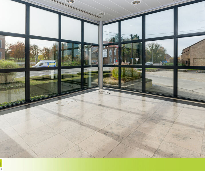 - Inkom 1 (28m²): 7.00x4.00m, dit was de ruimte waar vroeger de geldautomaten stonden. Voorzien van een buitendeur en veel vitrines en lichtinval. Afgescheiden met de achtergelegen berging dmv een wand dus gemakkelijk nog groter te maken waardoor het ook kan dienen als winkelruimte of kantoorruimte. Tegelvloer.