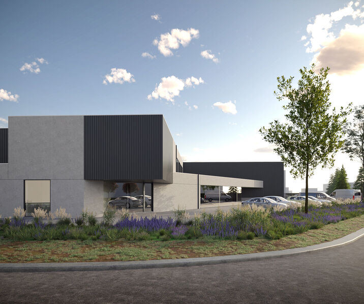 Deze nieuwe site voorziet 9 KMO-units met verschillende afmetingen. Extra troef: 2 units beschikken over aparte kantoorruimtes.