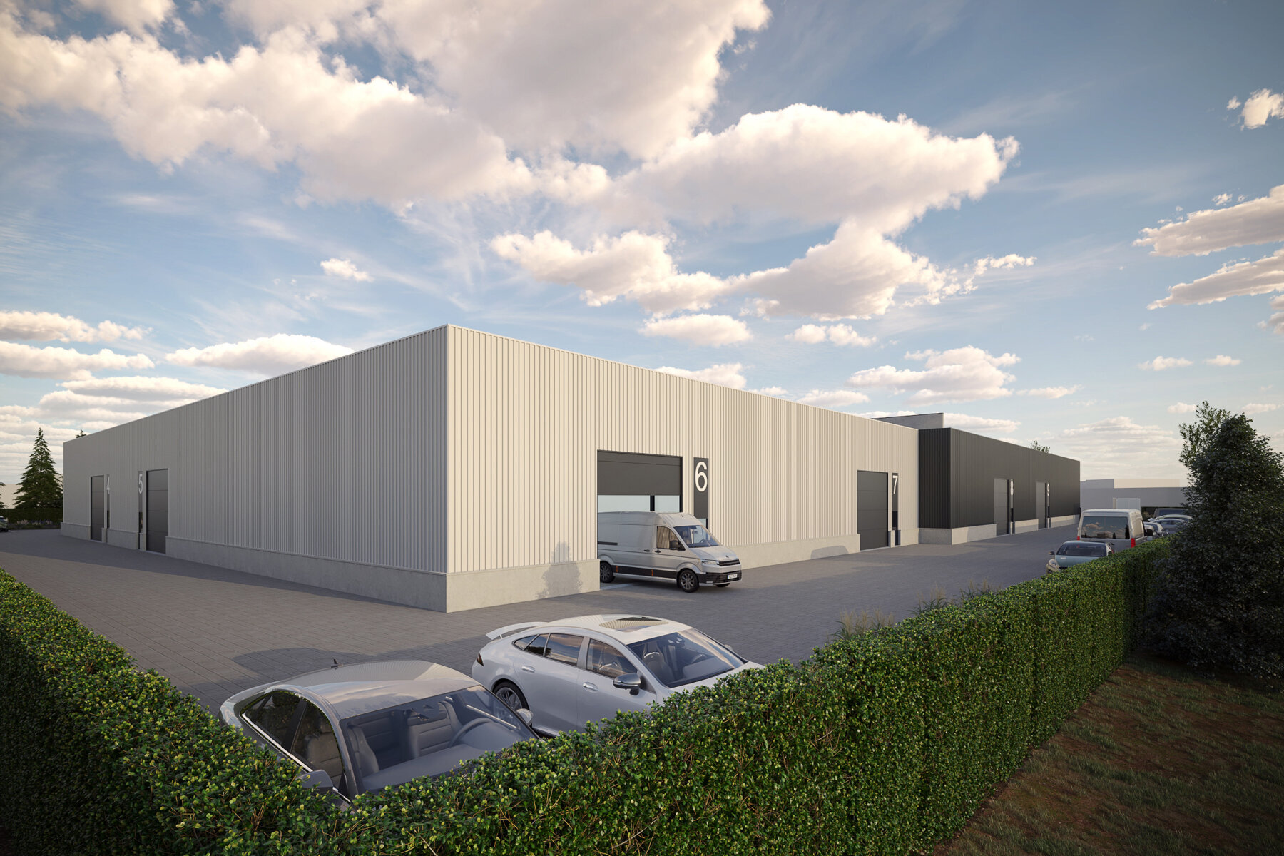 ALGEMEEN Aan de voornaamste toegangsweg naar het Industrieterrein Jagersborg, zal u binnenkort deze nieuw te bouwen bedrijfsunits kunnen terugvinden. Zowel de N73 als de N78 zijn vlot bereikbaar en de A2 autosnelweg bevindt zich op 9 km. Deze nieuwe site voorziet 9 KMO-units met verschillende afmetingen. Extra troef: 2 units beschikken over aparte kantoorruimtes. Het plan voorziet bovendien voldoende parkeerplaatsen, in totaal 39 stuks. Aan elke unit zullen persoonlijke parkeerplaatsen worden toegekend.