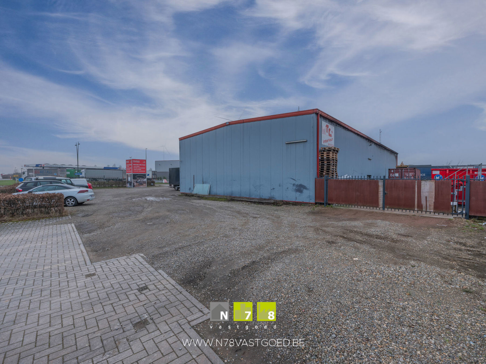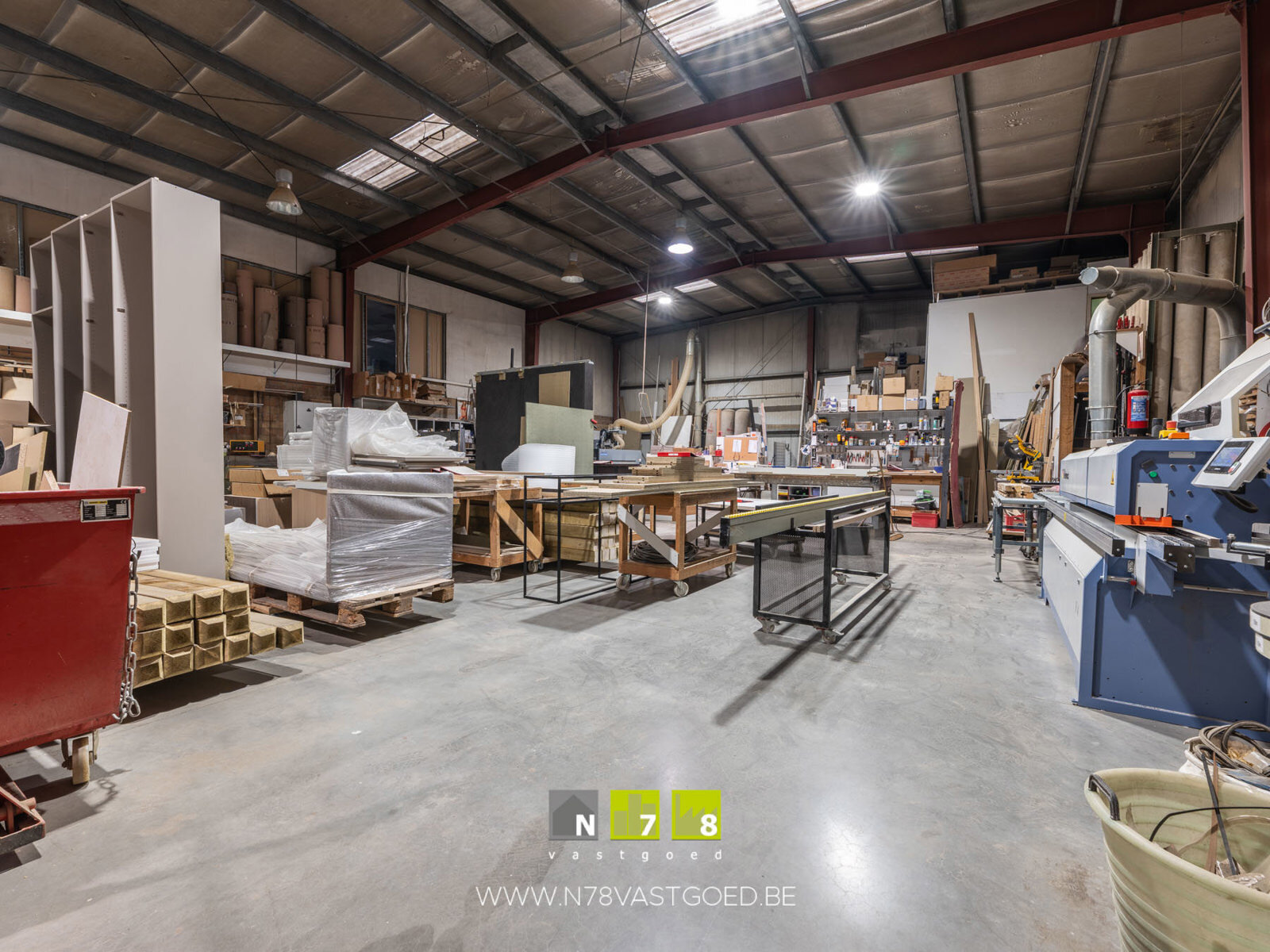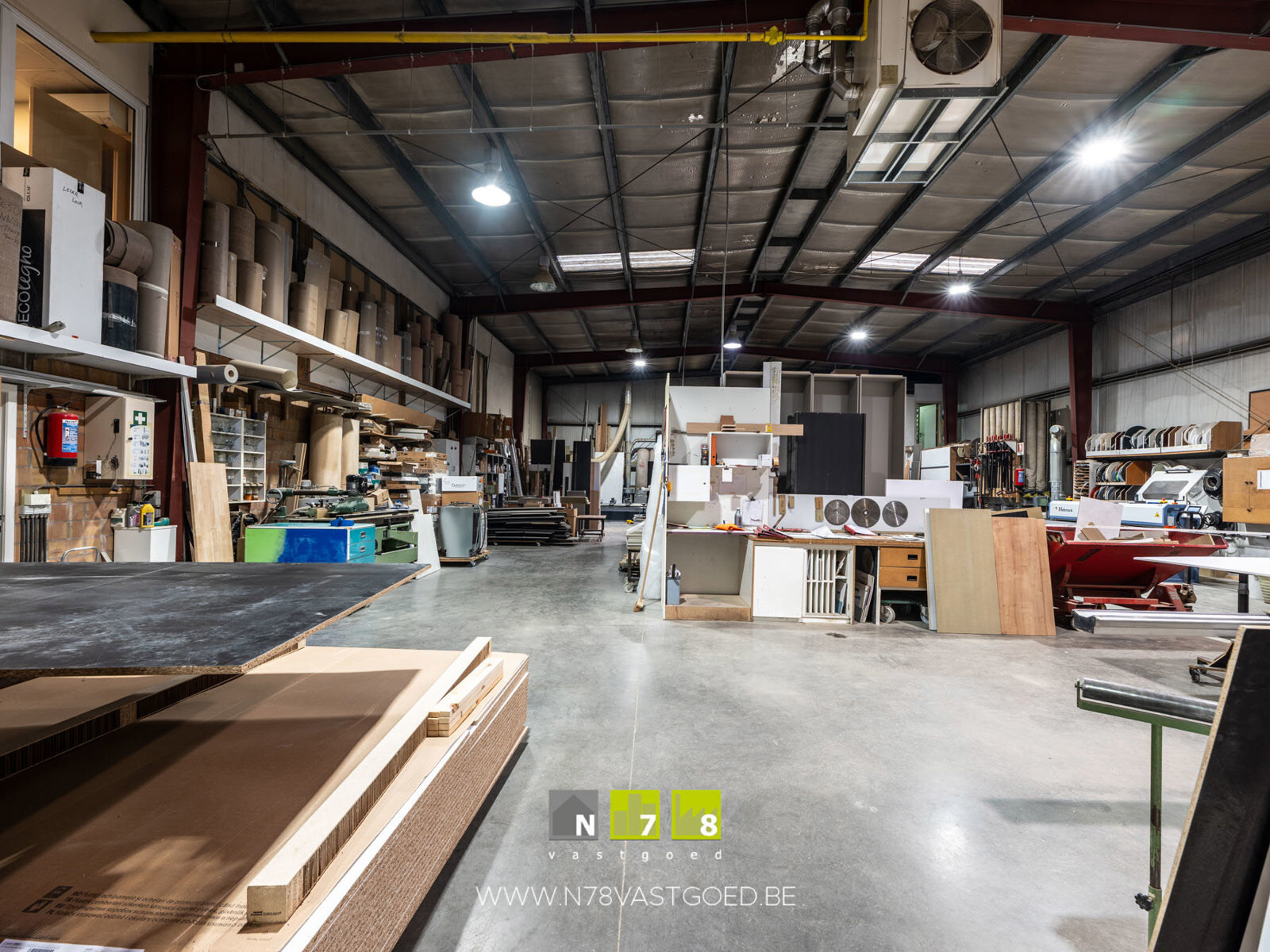 BEDRIJFSHAL 534M² - Afmetingen hal: 34m x 15m. - Vrije hoogte 6m. - 1 Sectionale poort (4m breedte en 4,50m hoogte). - Betonvloer. - Verwarming door warmeluchtblazer op aardgas.