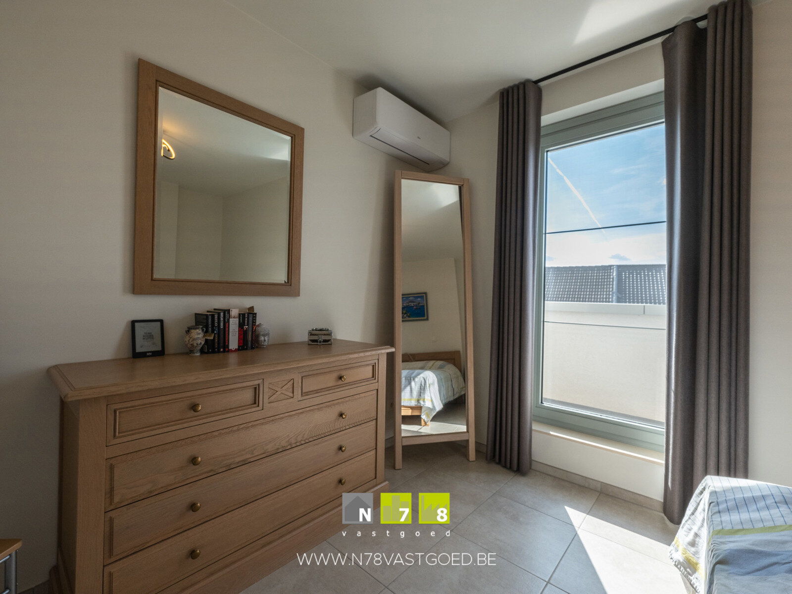 - Slaapkamer 1 (2,90m x 4,10m = 11,89m²): airco, tegelvloer.